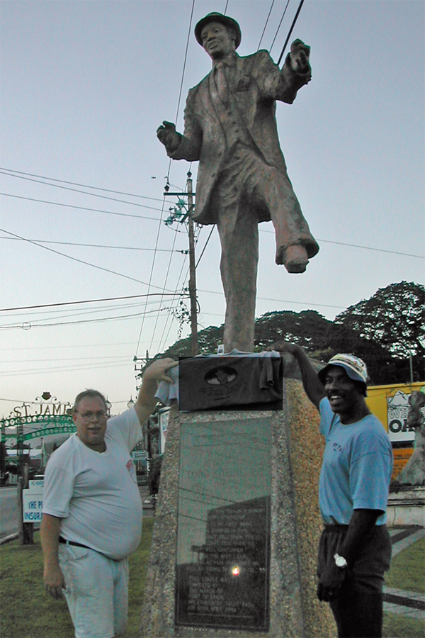 Left: Mike and Reggie at a statue